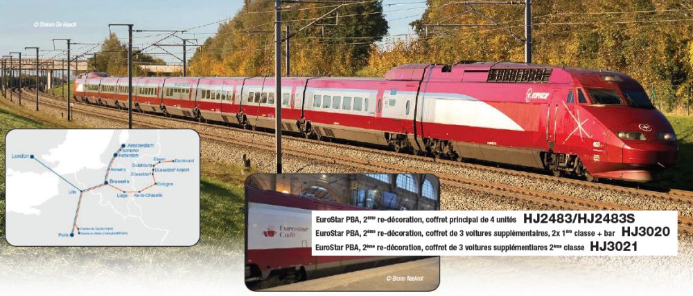 Pour réaliser une rame de 7 voitures, utiliser un coffret de base et deux coffrets complémentaires. Locomotives BB 15000R.